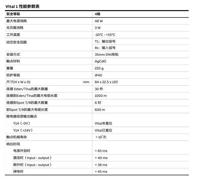 Vital 安全模块 VITAL 1 安全模块,2NO输出,动态脉冲检测 2TLA020052R1000